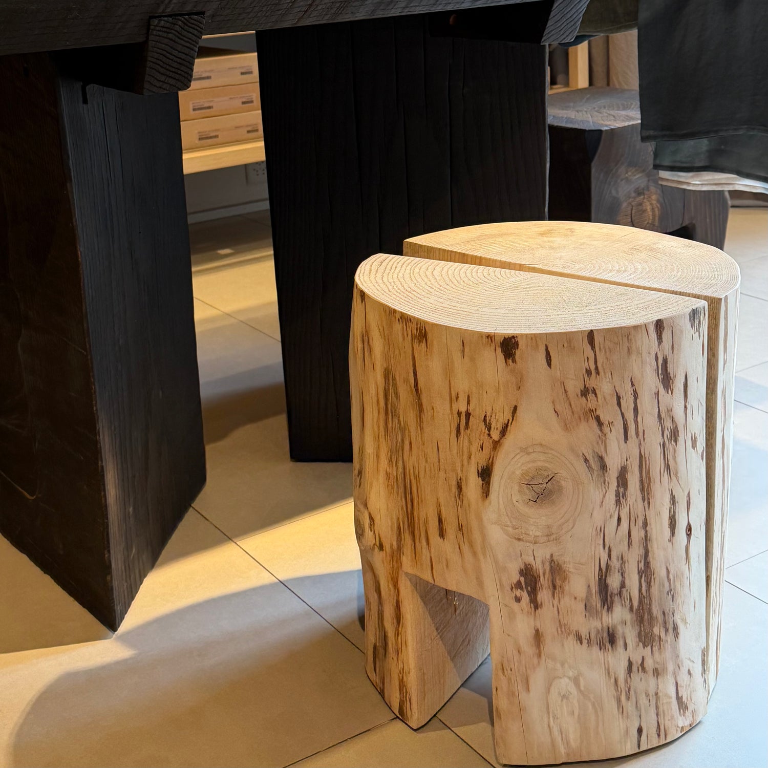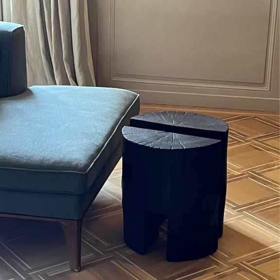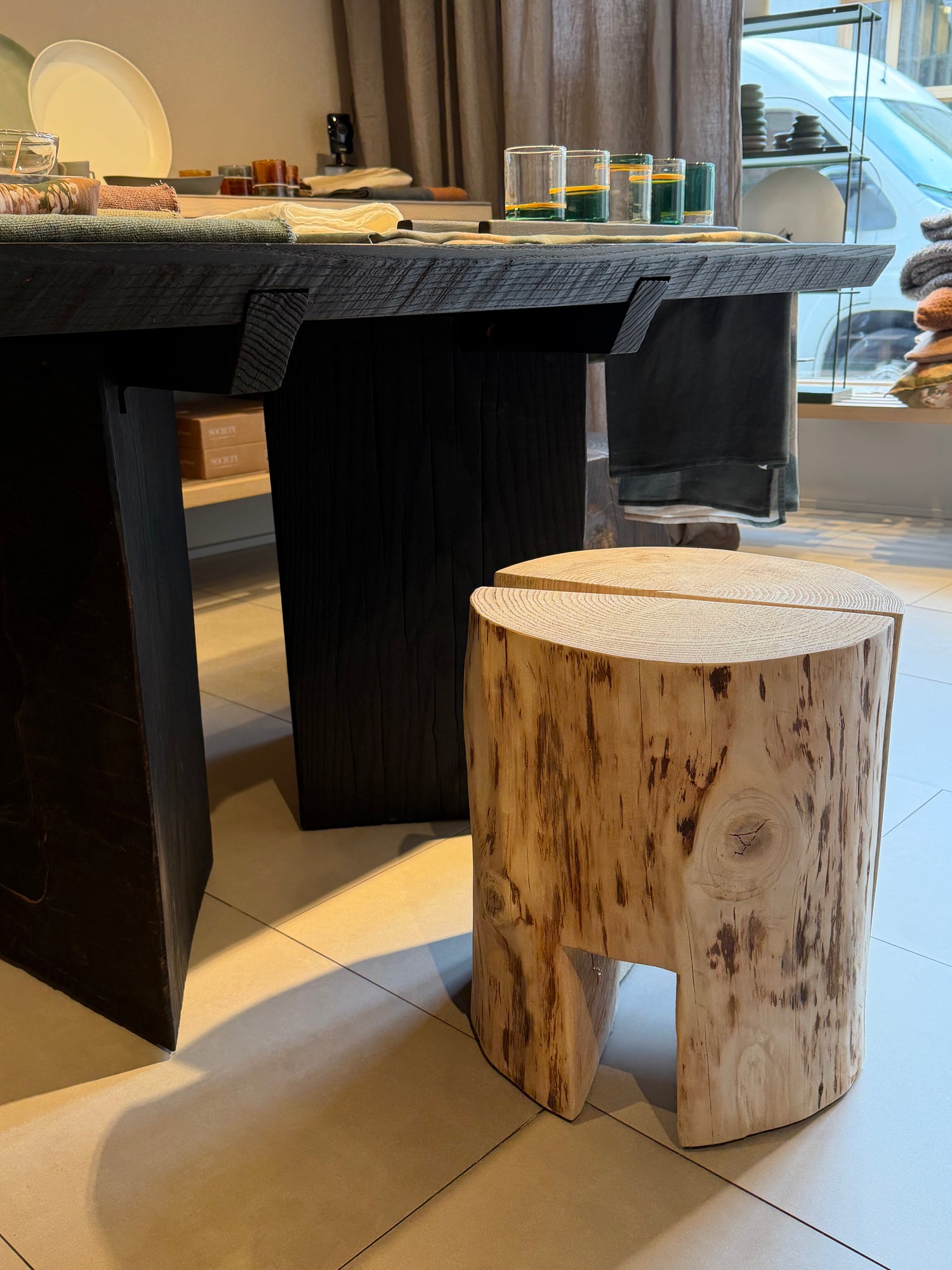 Each piece is a unique handcrafted creation made from solid fir wood. Available in natural finish or carefully carbonized to enhance its natural texture and durability. These sculptural trunks serve as versatile design elements — perfect as stools, side tables, or decorative accents. Their minimalist form and organic character make them ideal for any interior, whether classic or contemporary.