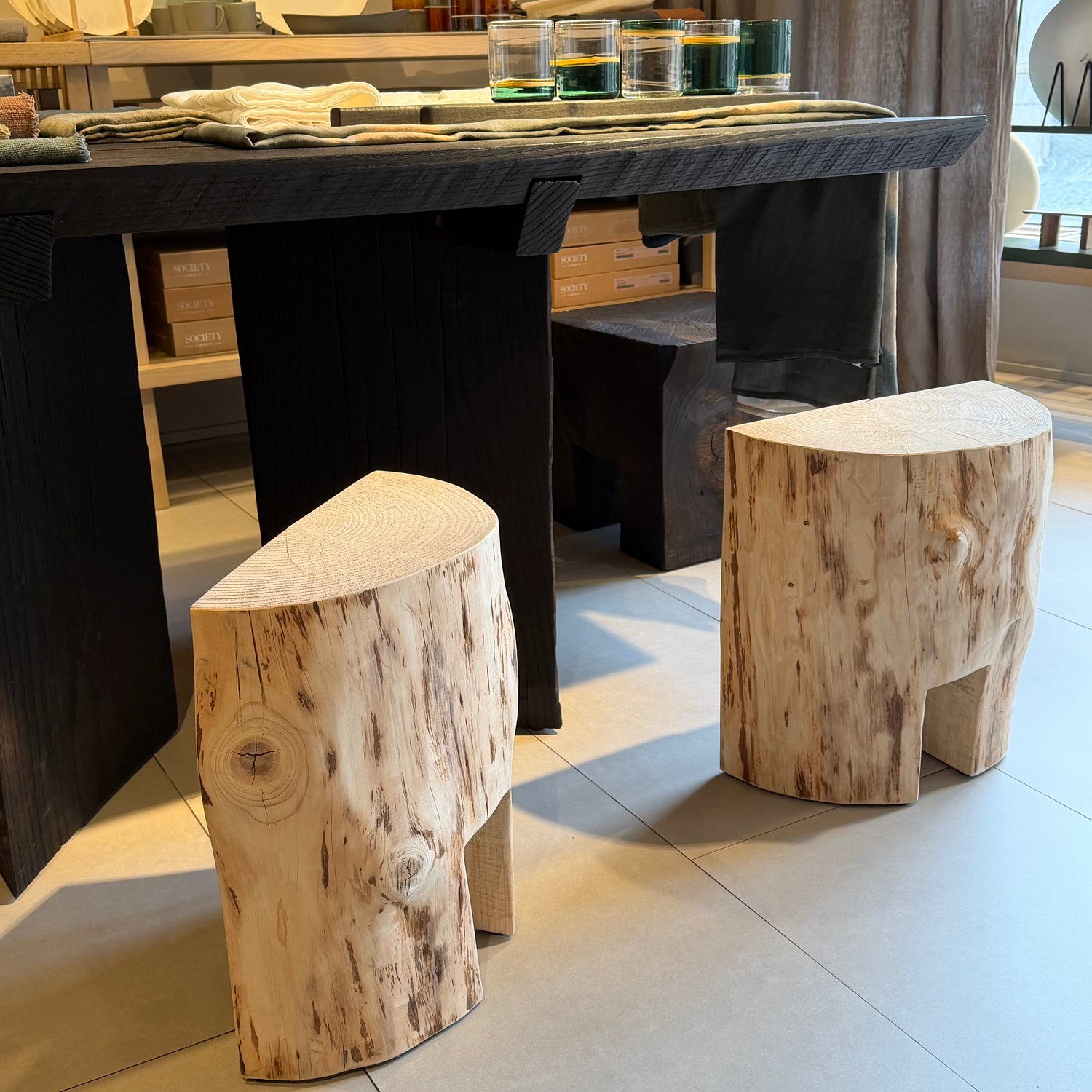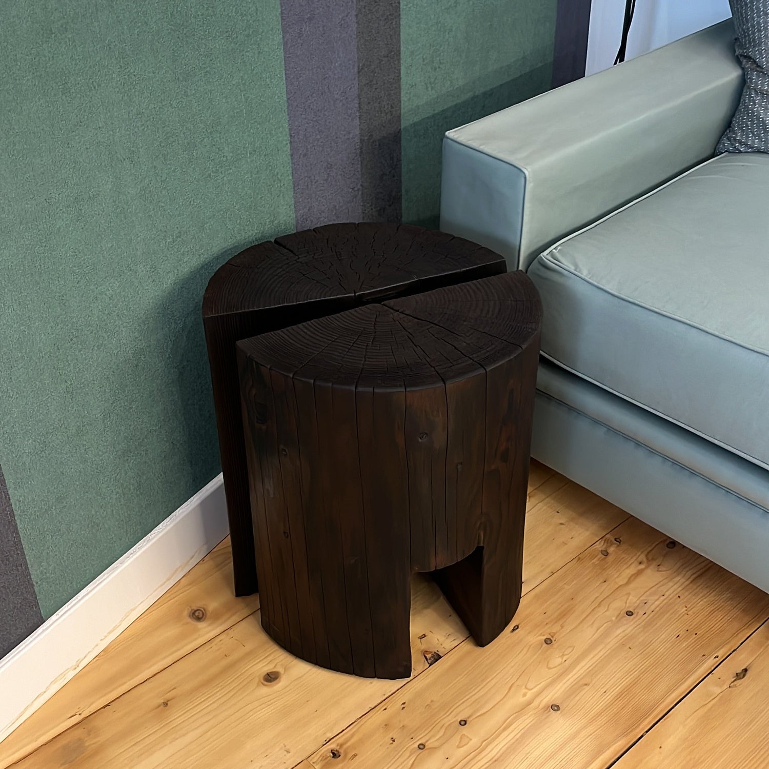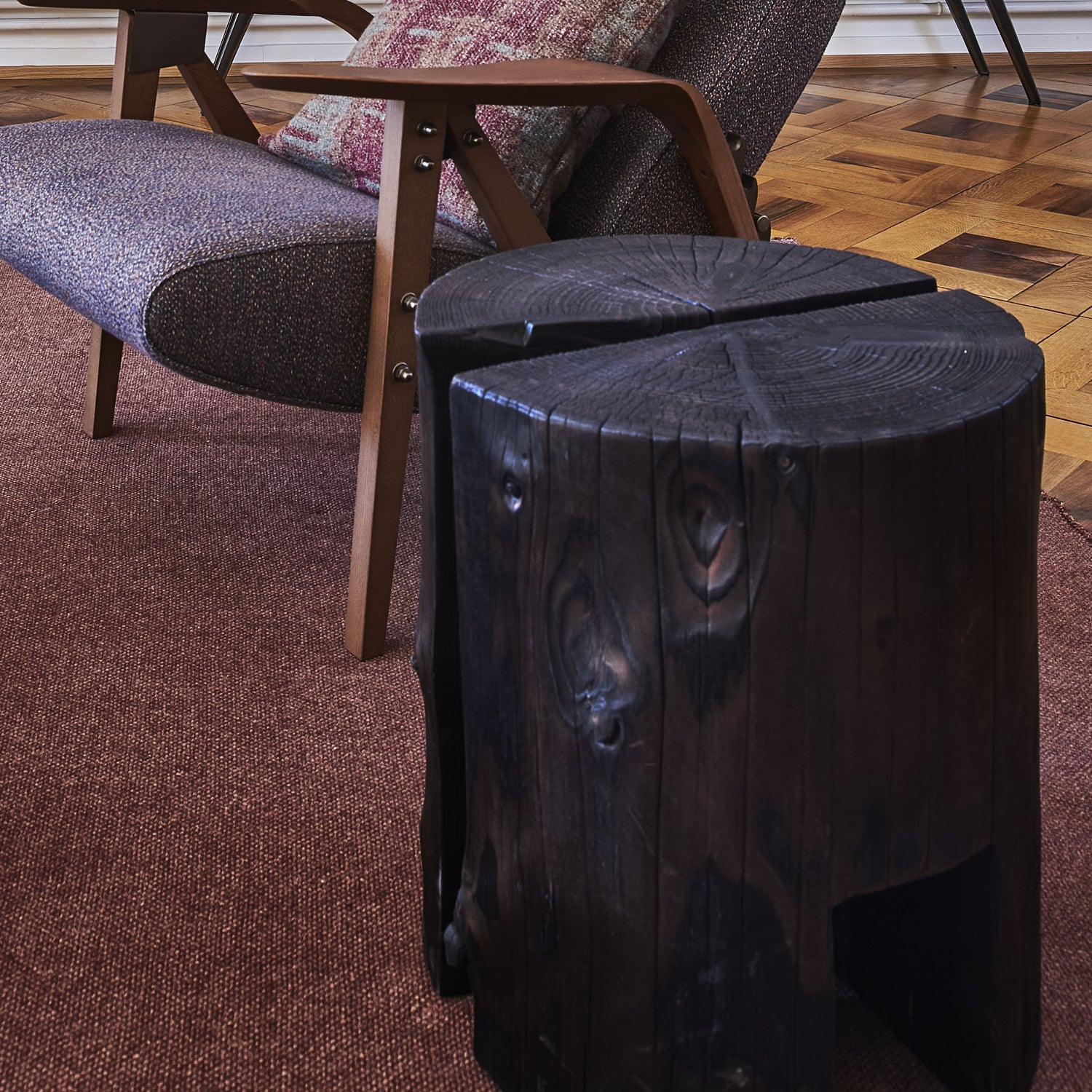 Each piece is a unique handcrafted creation made from solid fir wood. Available in natural finish or carefully carbonized to enhance its natural texture and durability. These sculptural trunks serve as versatile design elements — perfect as stools, side tables, or decorative accents. Their minimalist form and organic character make them ideal for any interior, whether classic or contemporary.