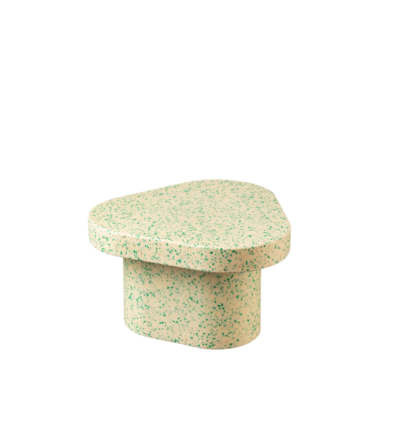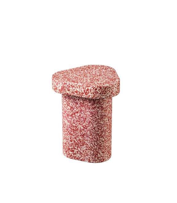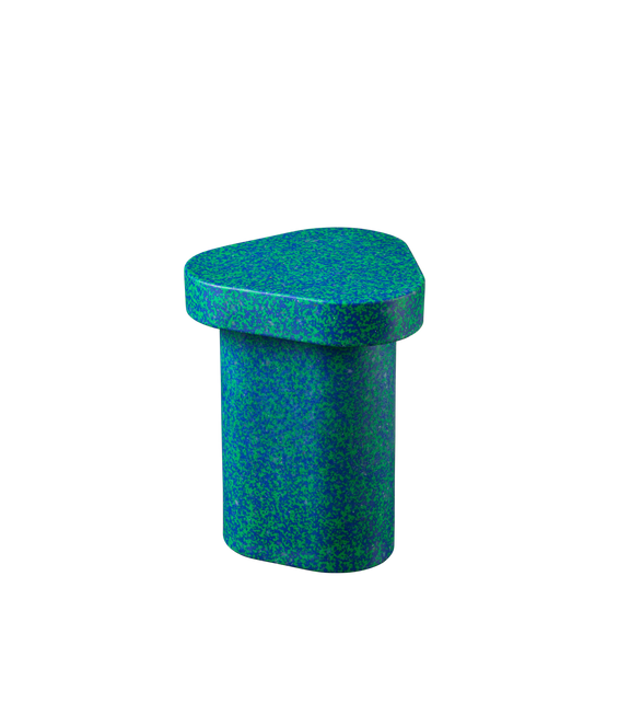 Superpop is a compact, playful side table designed by Paolo Cappello. Made from recycled and recyclable plastic, it turns everyday material into a bold, speckled colour statement—lightweight, durable and suitable for both indoor and outdoor use.