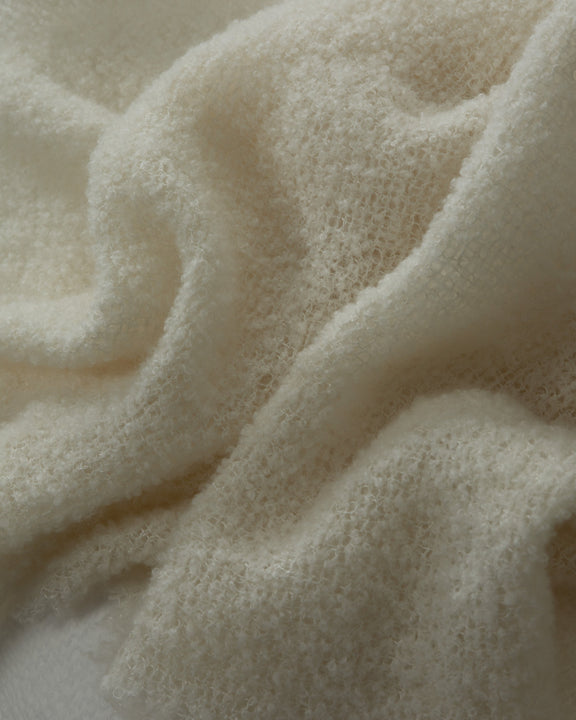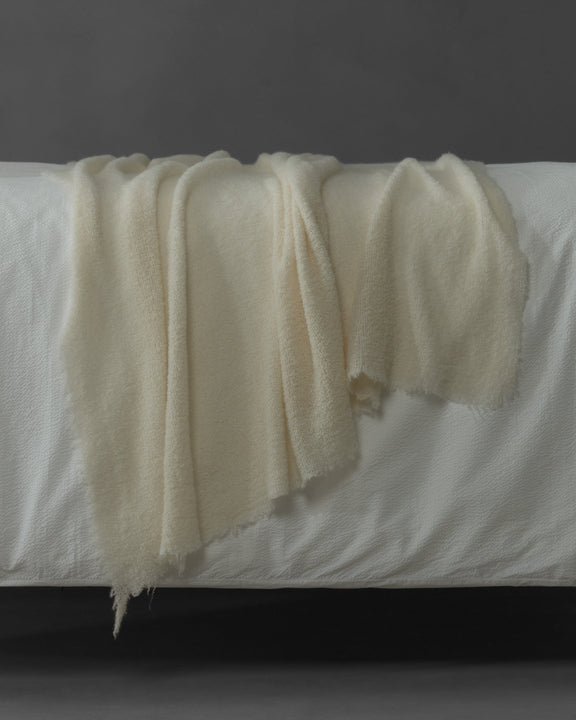 MIR is a throw is soft cashmere and silk gauze, available in a warm, gentle white. Paired with a more optical and pure white, it is the perfect accessory to drape on the bed, adding a touch of personality to the bedroom. MIR can also be used on a sofa, for a sophisticade look, attentive to details.