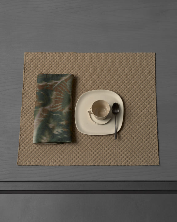 Large sketched leaves with fading outlines decorate NAP PAI napkins, which revisit the traditional Paisley motif in a pictorial key. Available in a delicate neutral nuance and in a bold contrasting combination of Guado and Cuoio, NAP PAI napkins gently dress the table with style. Each printed napkins is sold individually.