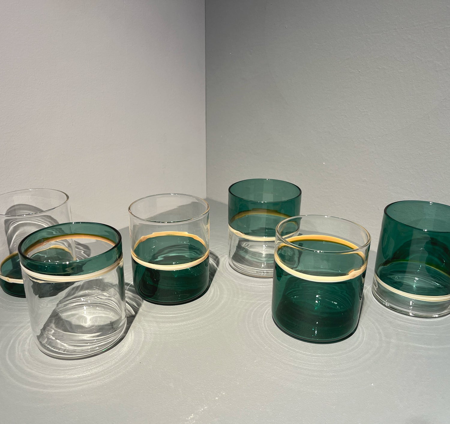 The Dabliu glasses, designed by Beatrice Rossetti for Society Limonta, are conceived as small table sculptures, balancing functionality and aesthetics. Mouth-blown and handcrafted, each piece is unique: subtle variations in thickness and transparency reveal the artisanal gestures behind their creation.
