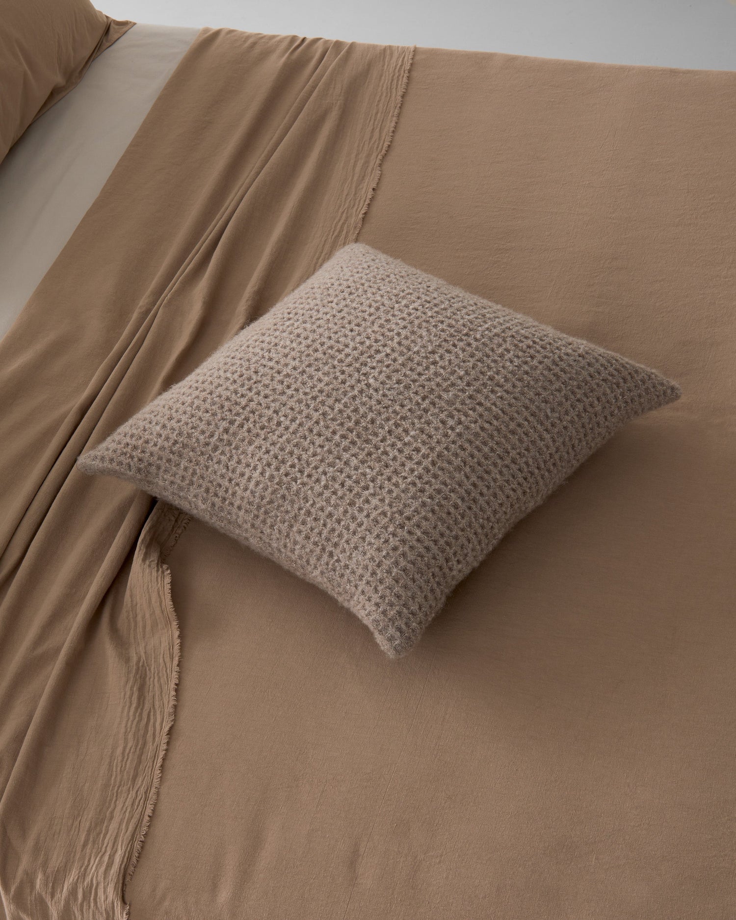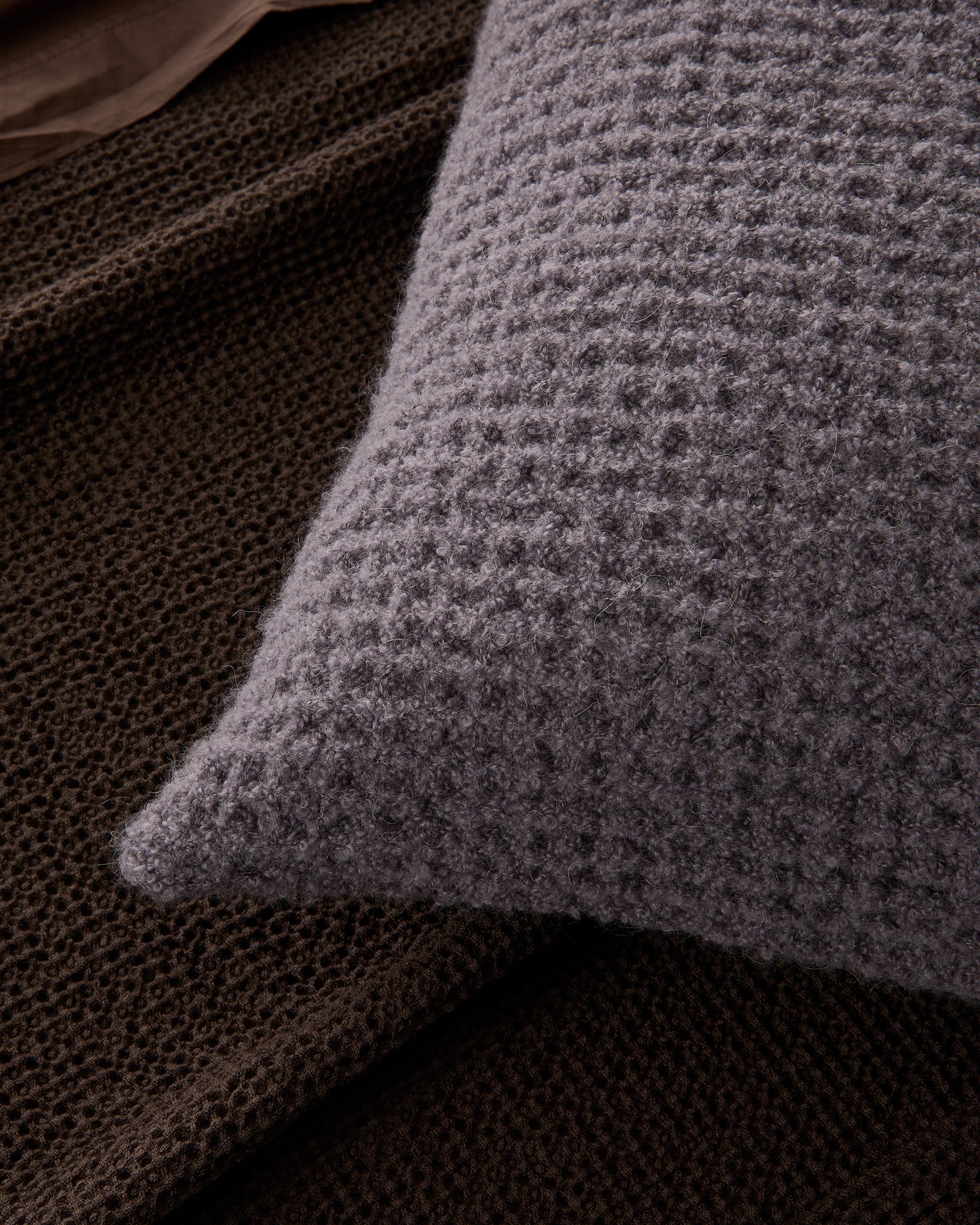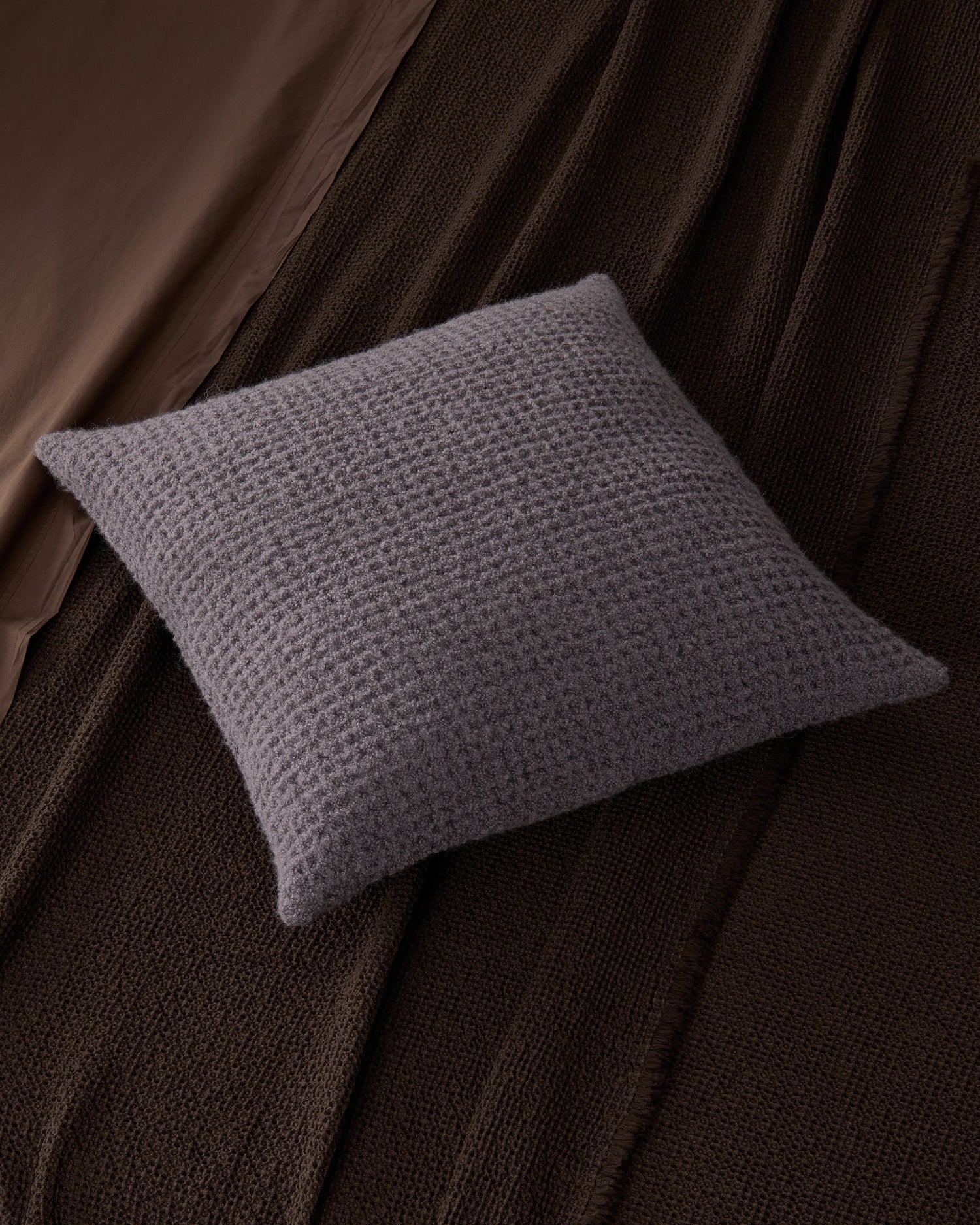 PON decorative cushion is made of boucle alpaca. The macro waffle weave texture creates a textured and soft finishing. The embossed tone-on-tone motif decorates the bedroom or the living room with sophistication and contemporary taste. PON cushion is sold individually.